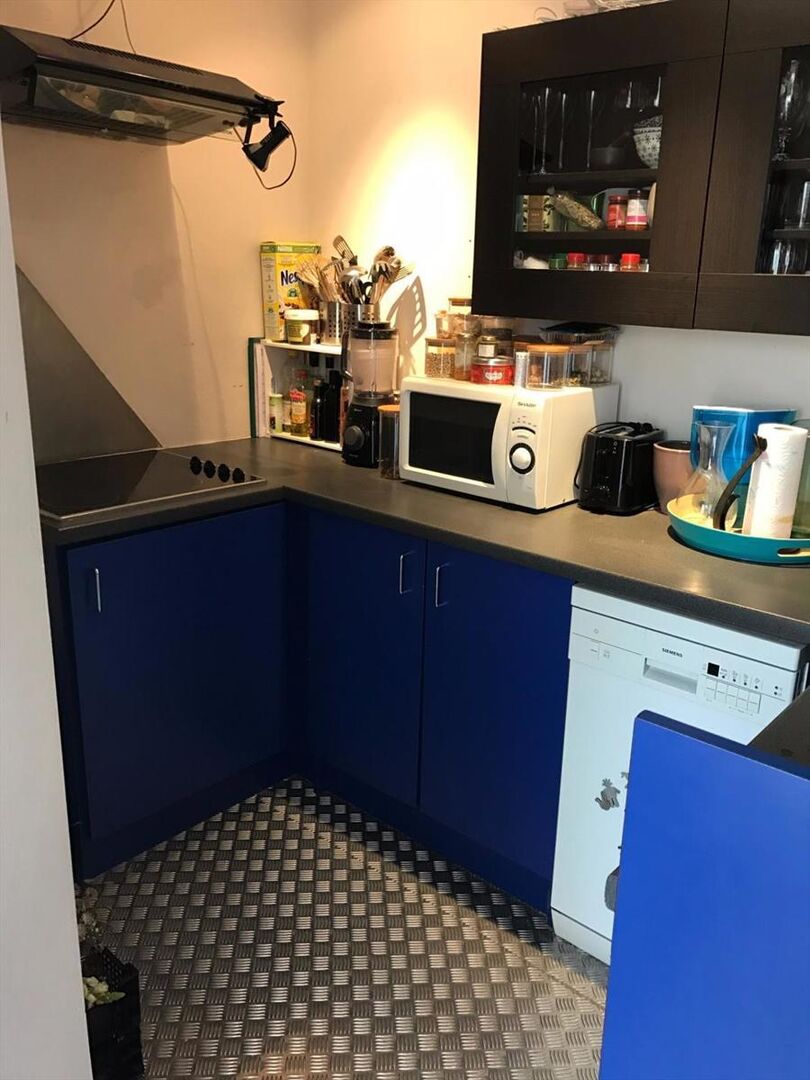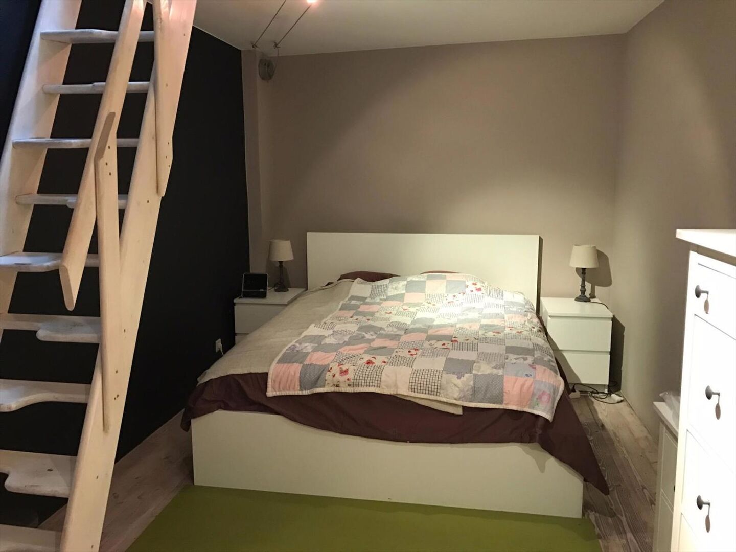 Very charming 1-bedroom apartment in the coziest street in Leuven. The 95 m² apartment is located on the first floor at the rear and has a spacious storage room with washing machine connection and extra shower and sink, a cozy living room with open kitchen, office corner, terrace, separate toilet, spacious bedroom with upstairs spacious bathroom with corner bath and double sink and an extra storage room. The apartment has pleasant wooden flooring. Ideal for a single person or couple. Available immediately. Rent €945 + €120 provision for communal costs, private water, and heating. Electricity is individual.