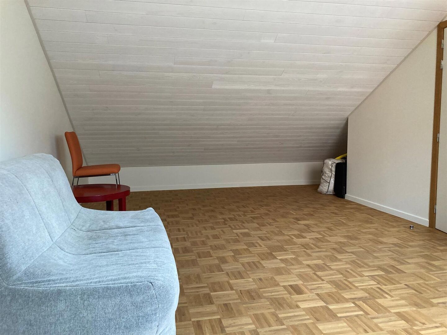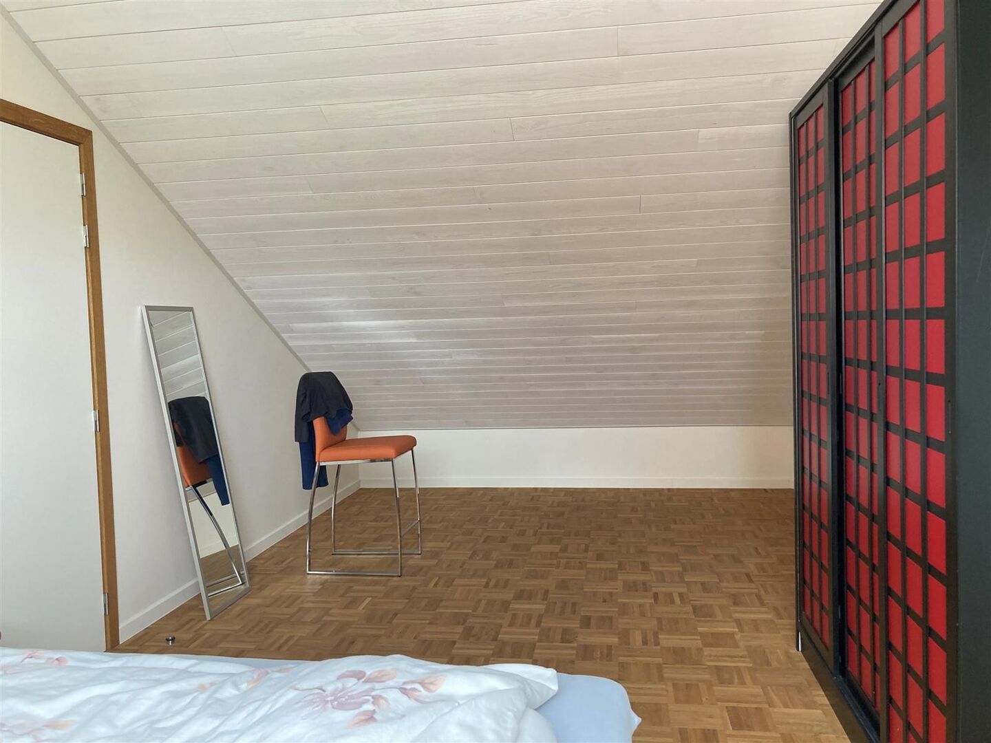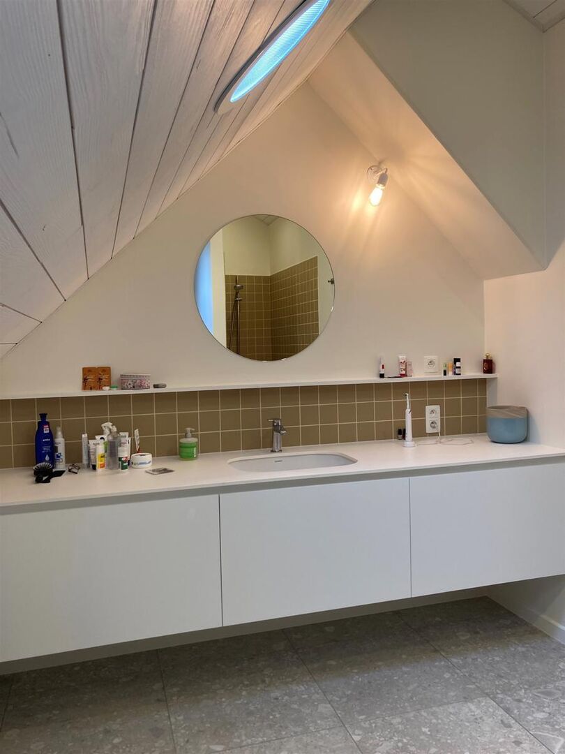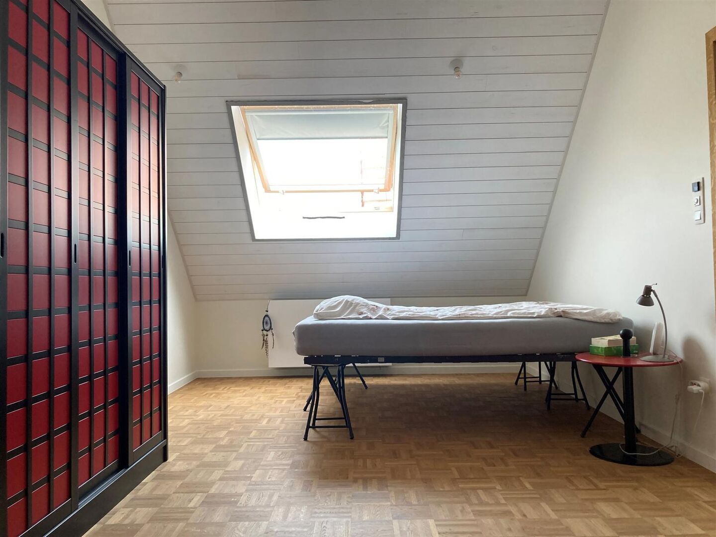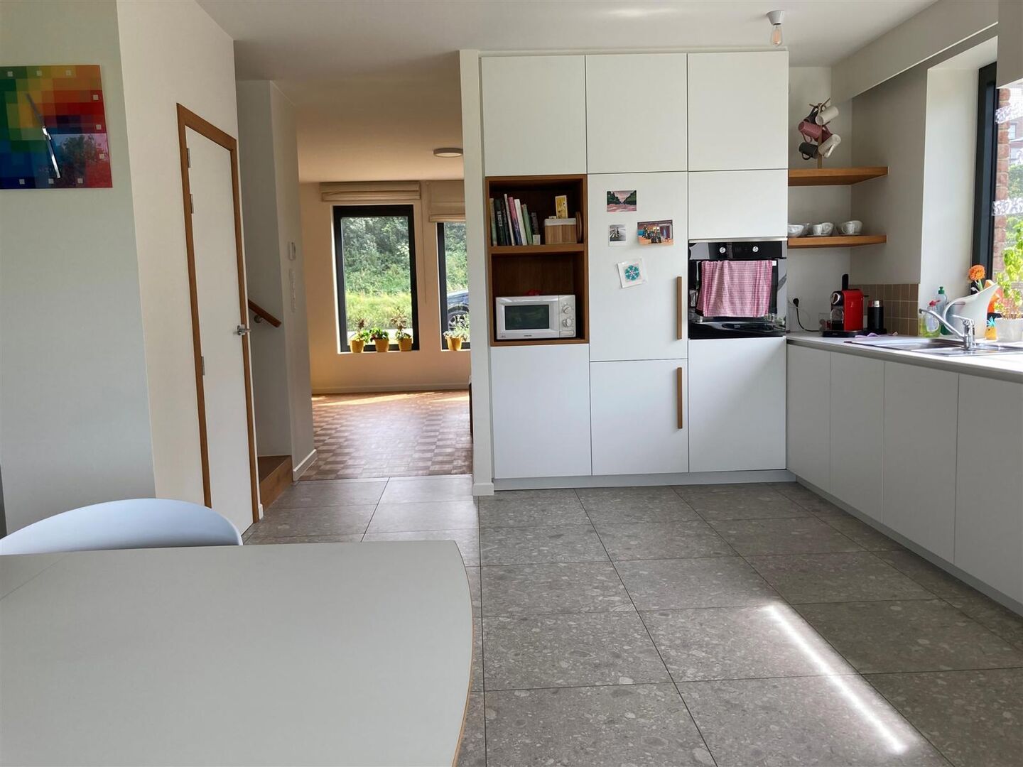 Charming and ultra-energy efficient house with a living area of 225 m², located in a quiet green area and at the end of a cul-de-sac. Close to kindergarten and elementary school, stores, train station, the famous Zoetwaters, .... and 20 minutes from Leuven. On the ground floor there is a spacious central entrance hall with a separate toilet, access to the living space and at the back are the open, installed kitchen and a bright dining room. This room offers a beautiful view of the sun terrace and the nature reserve behind it. There is also an additional storage room. On the second floor there are a spacious night hall with space for additional closets and washing machine connection, 2 spacious bedrooms, bathroom with walk-in shower, bathtub and bathroom cabinet. The indoor garage with electric gate has 1 parking space, outside there is space for 2 additional cars. Rent is € 1450/month. Utilities are individual and very low because of favorable E-level. Heating and partial floor heating is via heat pump, electricity is provided by solar panels. Available immediately.