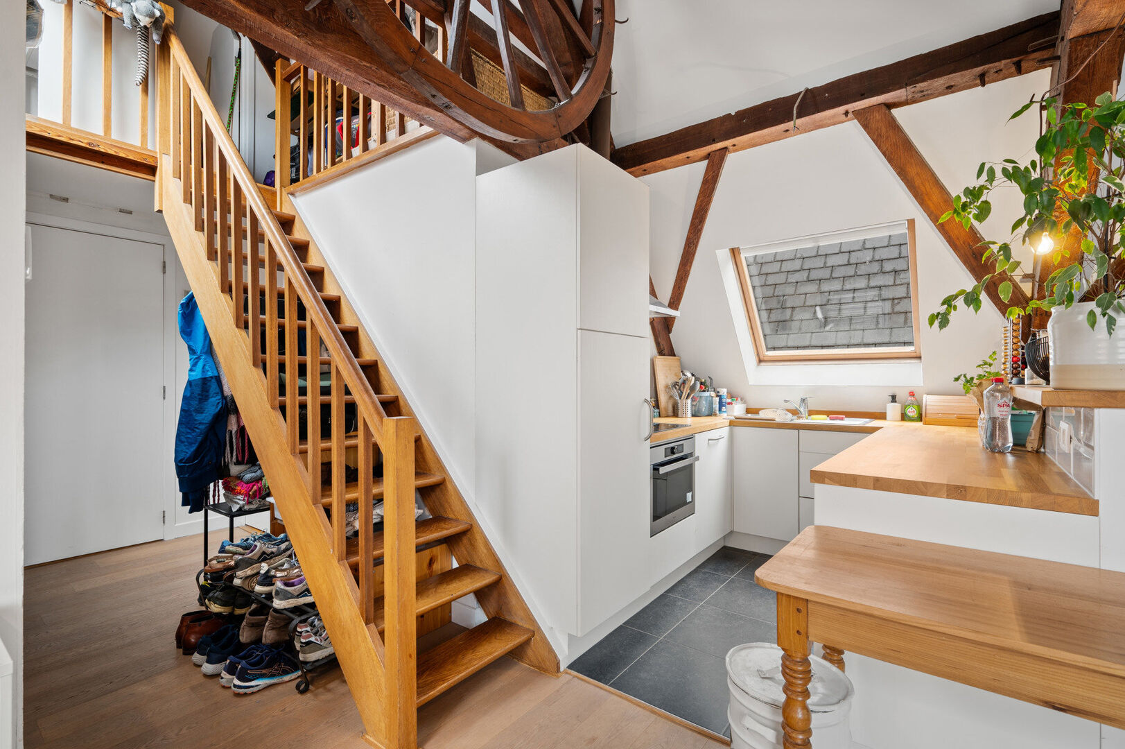 This unique duplex apartment, full of character and light, is located in a renovated patrician house on the charming Vaarstraat. The combination of authentic elements and modern finishes creates a special living experience.