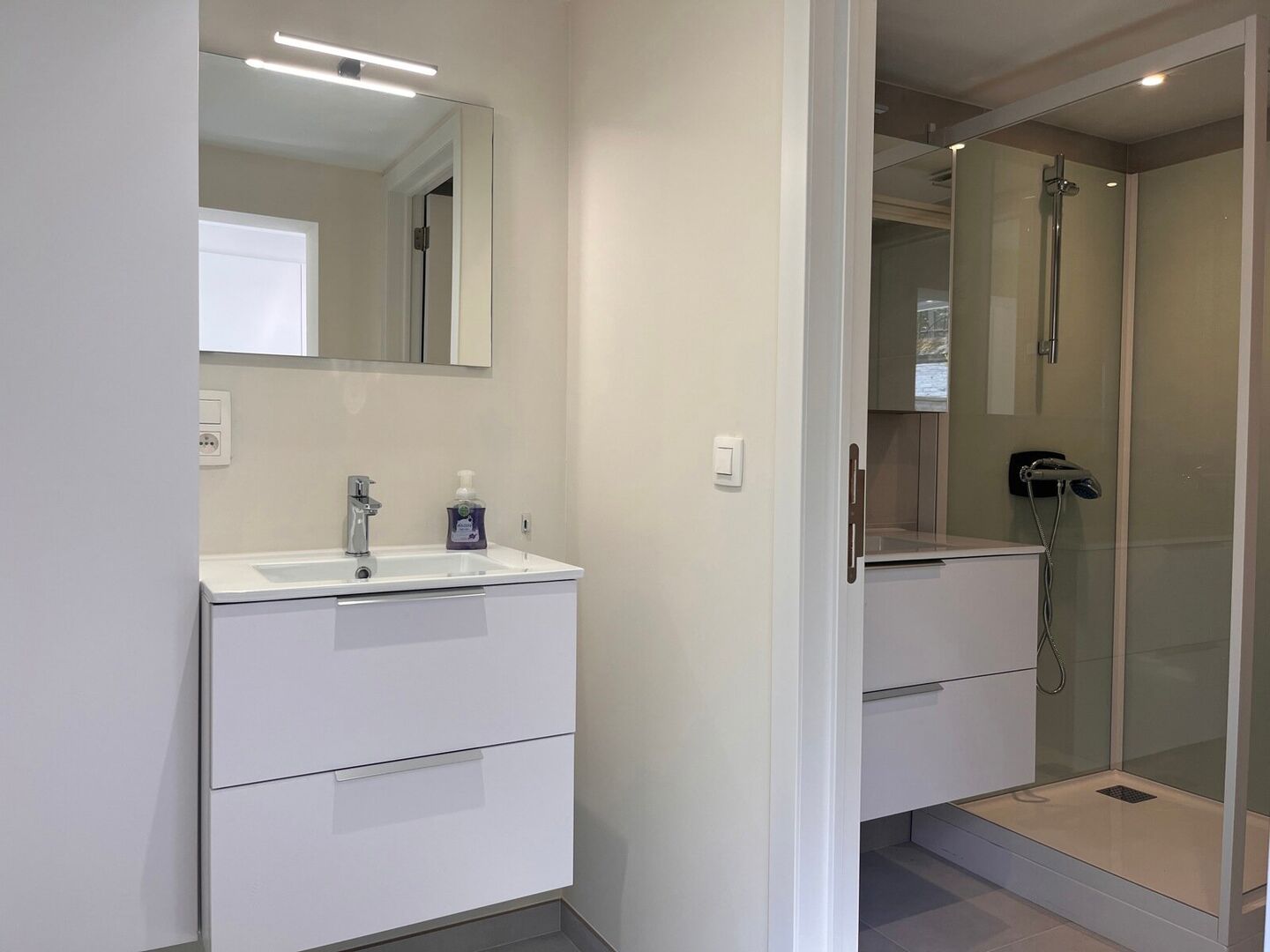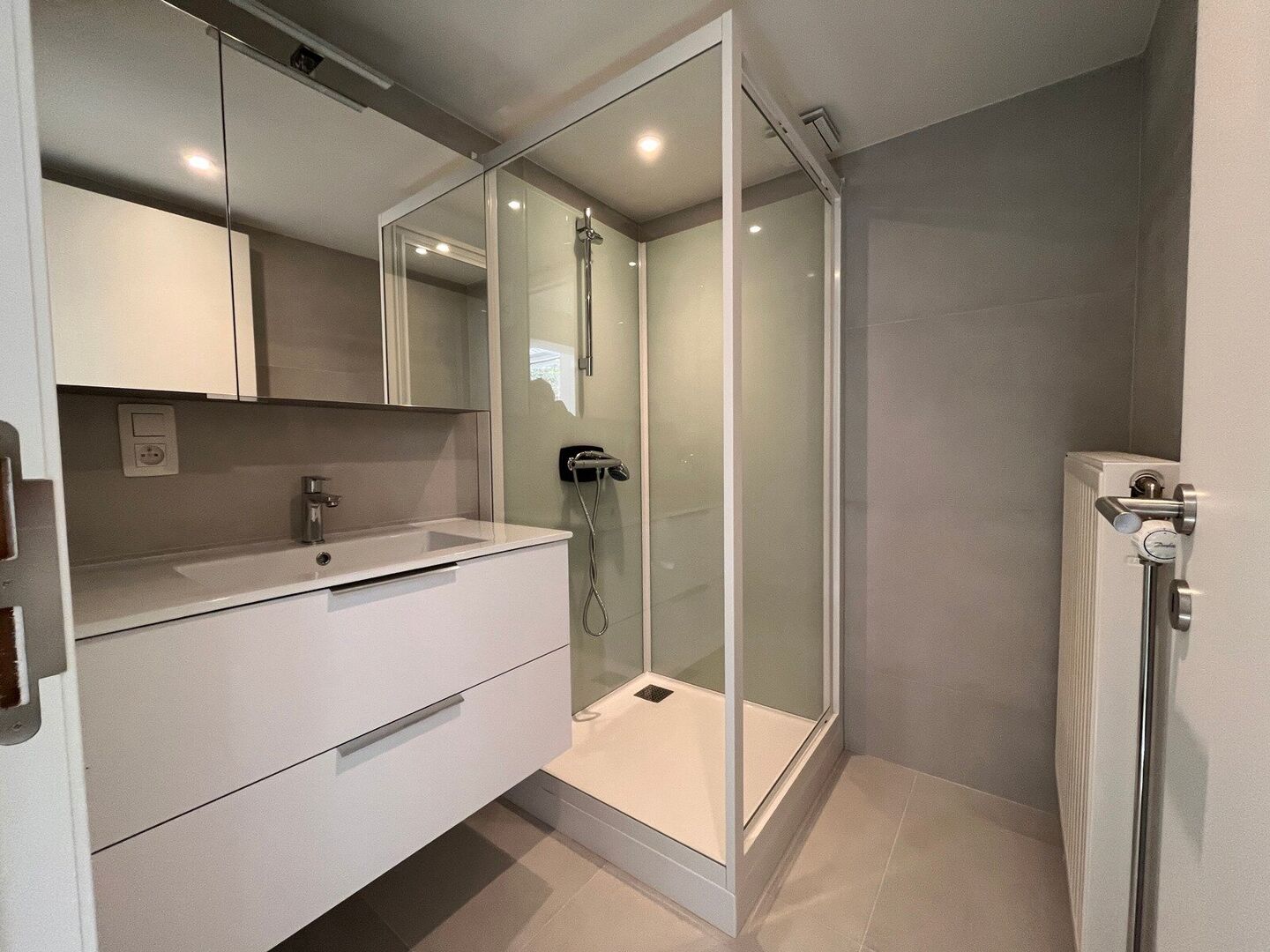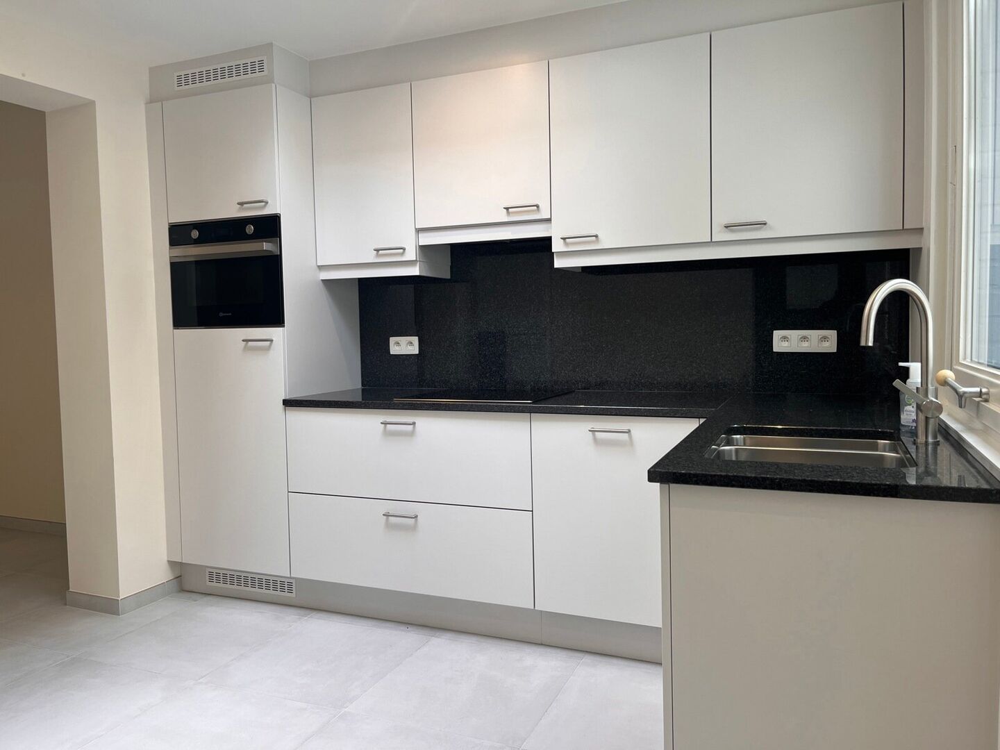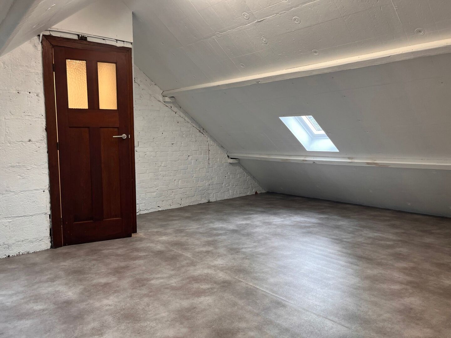 This solid house from the 30's is located in one of the nicest and quietest streets of Leuven. It was completely renovated and has the following layout: Entrance hall, open living room with adjacent new fully equipped kitchen. Bathroom with sink and shower, separate toilet, washbasin and storage room with washing machine connection. The kitchen leads to the south-facing courtyard. The second floor comprises 2 spacious bedrooms, one of which gives access to the neatly finished attic. All windows have high performance glass and shutters, new gas central heating. The property is available from first of march.