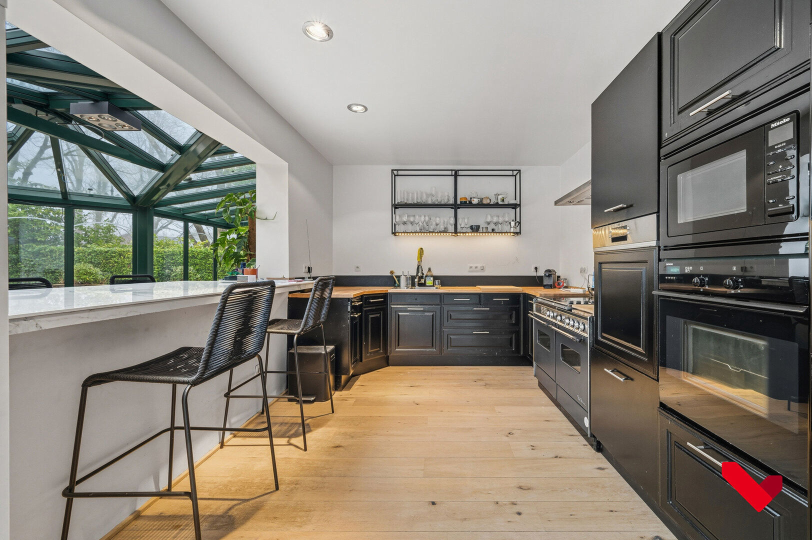 As a unique added value, the property includes a warehouse with a double garage door, easily accessible via a separate rear entrance. This infrastructure offers outstanding opportunities for storage, workshop space, logistical support or professional use, entirely independent from the main residence.
