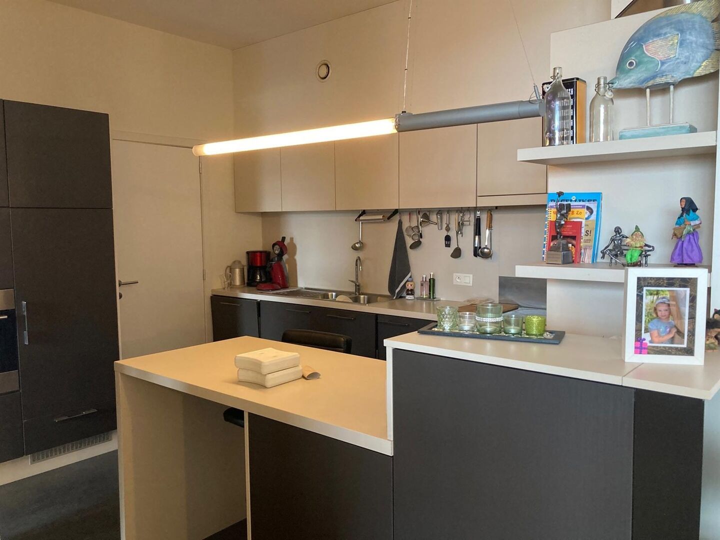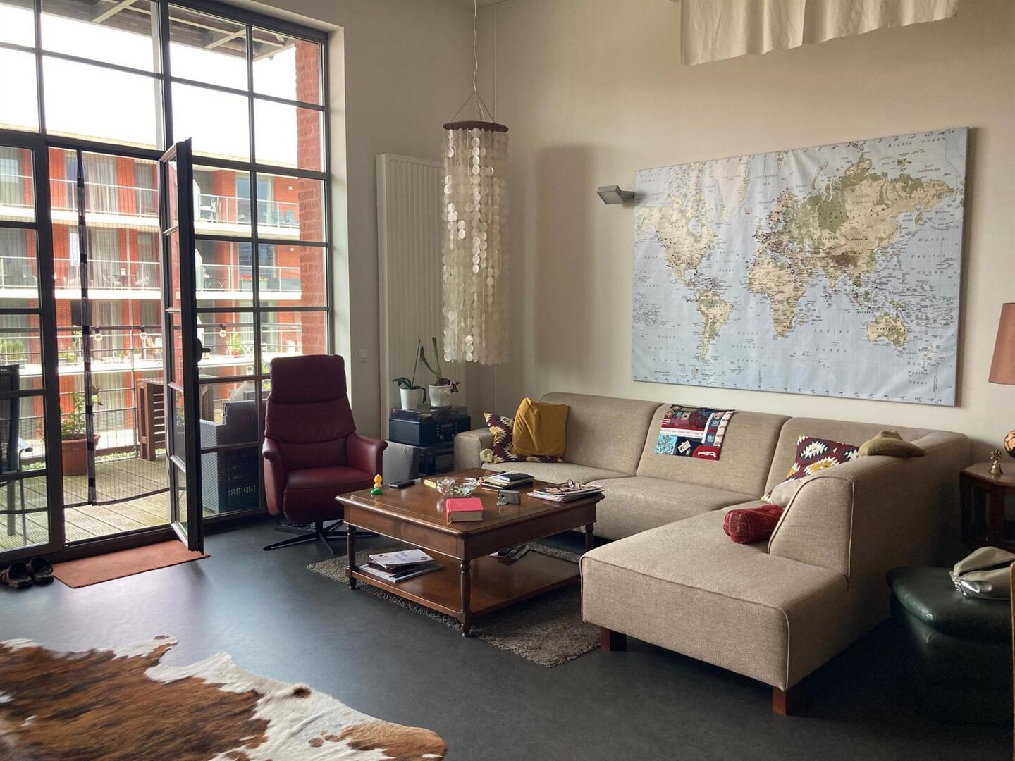 Unique loft apartment in Park 51 on the first floor with terrace and view over large courtyard. The loft is stylishly decorated and comprises an entrance hall with separate toilet, a very spacious living area where the feeling of space is emphasized by the enormously high ceilings. Adjoining terrace of 12 m² and semi-open fully equipped kitchen. Next to the kitchen is a storage room. The night hall leads to two bedrooms, a bathroom with double sink, shower, and bathtub, and a second storage room with washing machine connection. There is also an underground parking space, from where you can take the elevator directly upstairs. A unique place to live within walking distance of the center of Herent and five minutes from the E40 motorway and the center of Leuven. Available from 1/11/2025. Rent €1250 + €95 provision for communal costs. Utilities are individual.