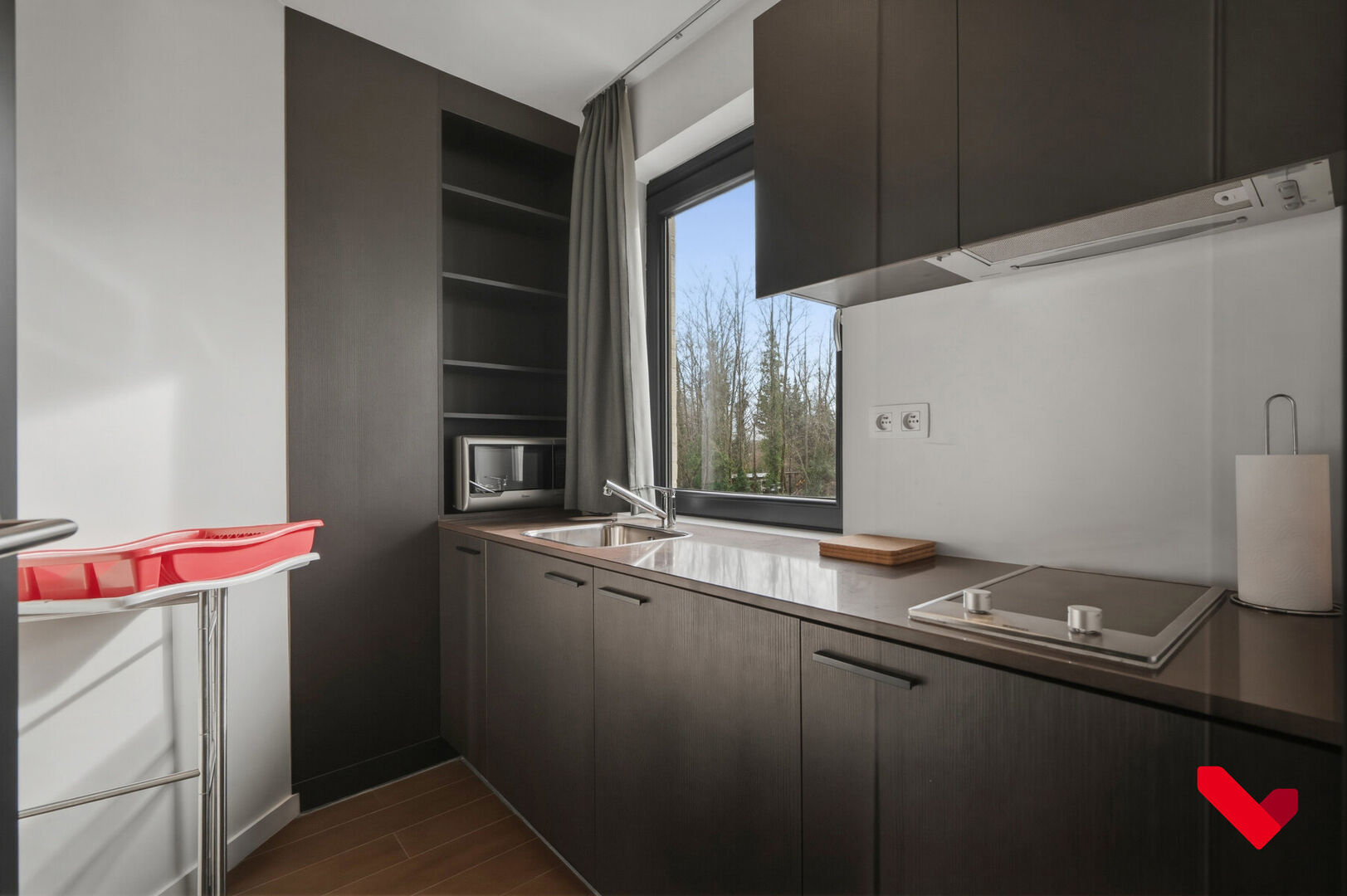 The studio is located at the rear of the building, ensuring extra privacy and a pleasant living environment away from city traffic. In addition, the property features a spacious terrace—ideal for enjoying a quiet coffee moment or some fresh air. Finally, there is a shared bicycle storage area, perfectly suited to city life in Leuven.