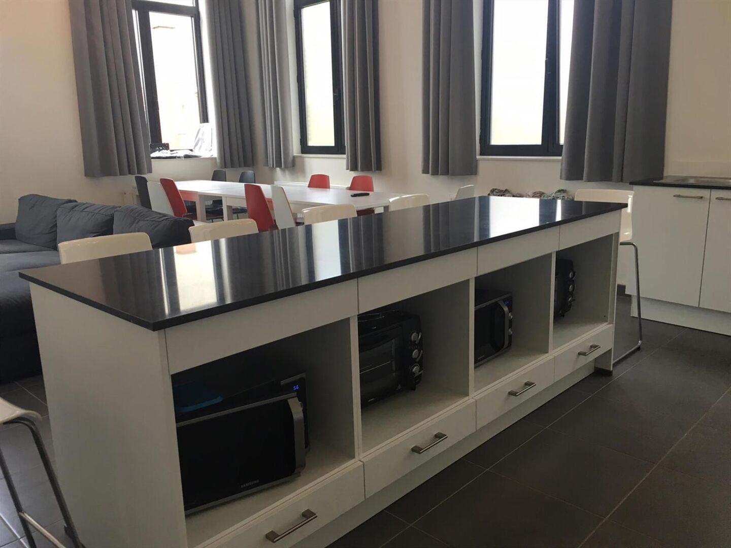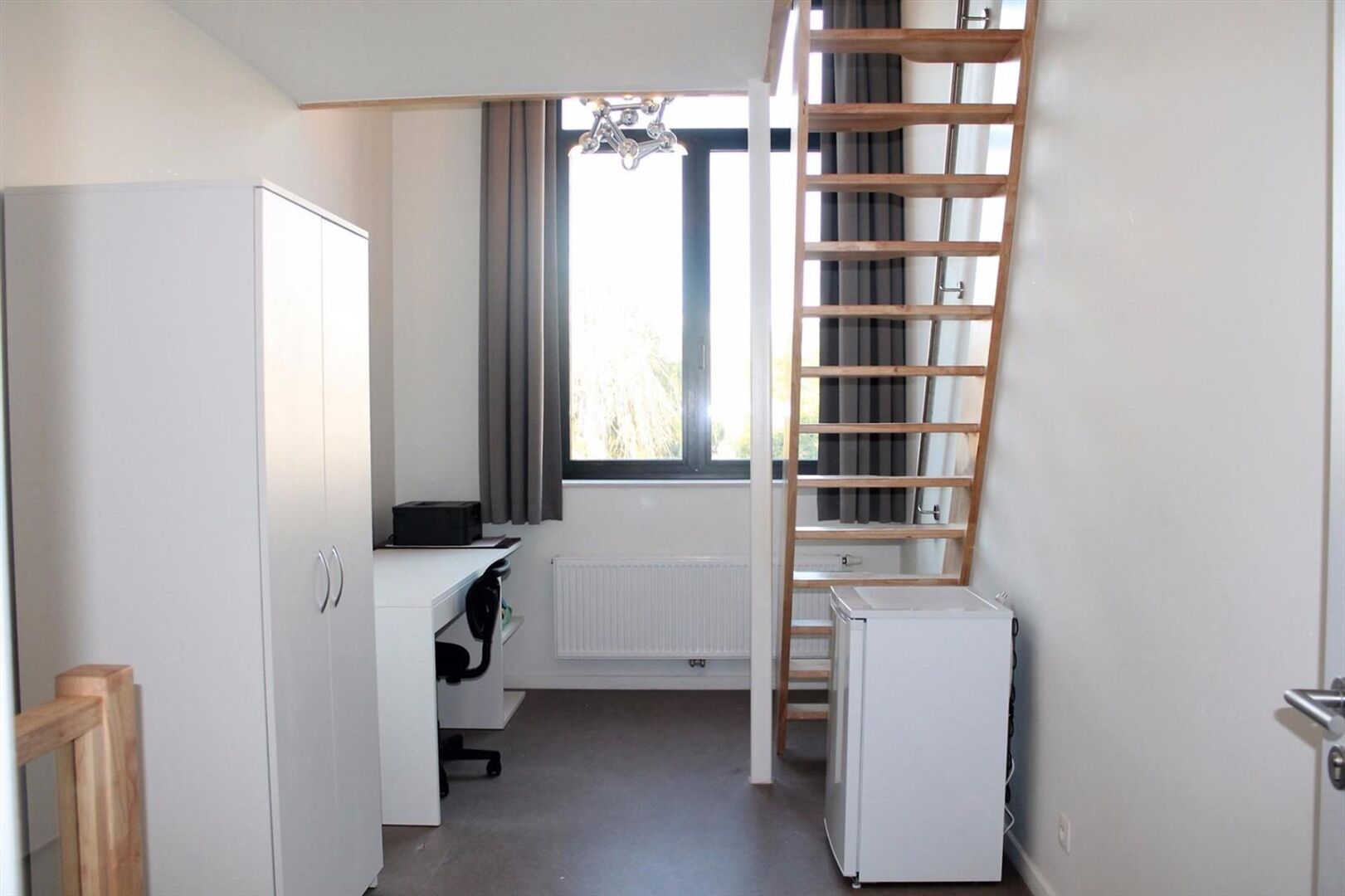 Nouvelle chambre d'étudiant en duplex dans le prestigieux projet Campus Vital. Cette chambre d'étudiant est située au premier étage. La chambre à coucher est en duplex et la salle de bains se trouve au rez-de-chaussée. La chambre est meublée avec un lit, un bureau, un réfrigérateur et une armoire. L'éclairage et les rideaux sont également fournis. Il y a une grande cuisine commune avec plusieurs plaques de cuisson, des tables à manger et un coin télévision. Le bâtiment dispose également d'une cour intérieure et d'un parking à vélos couvert à l'arrière. Loyer 660 € + 70 € de provision. Disponible immediatement.