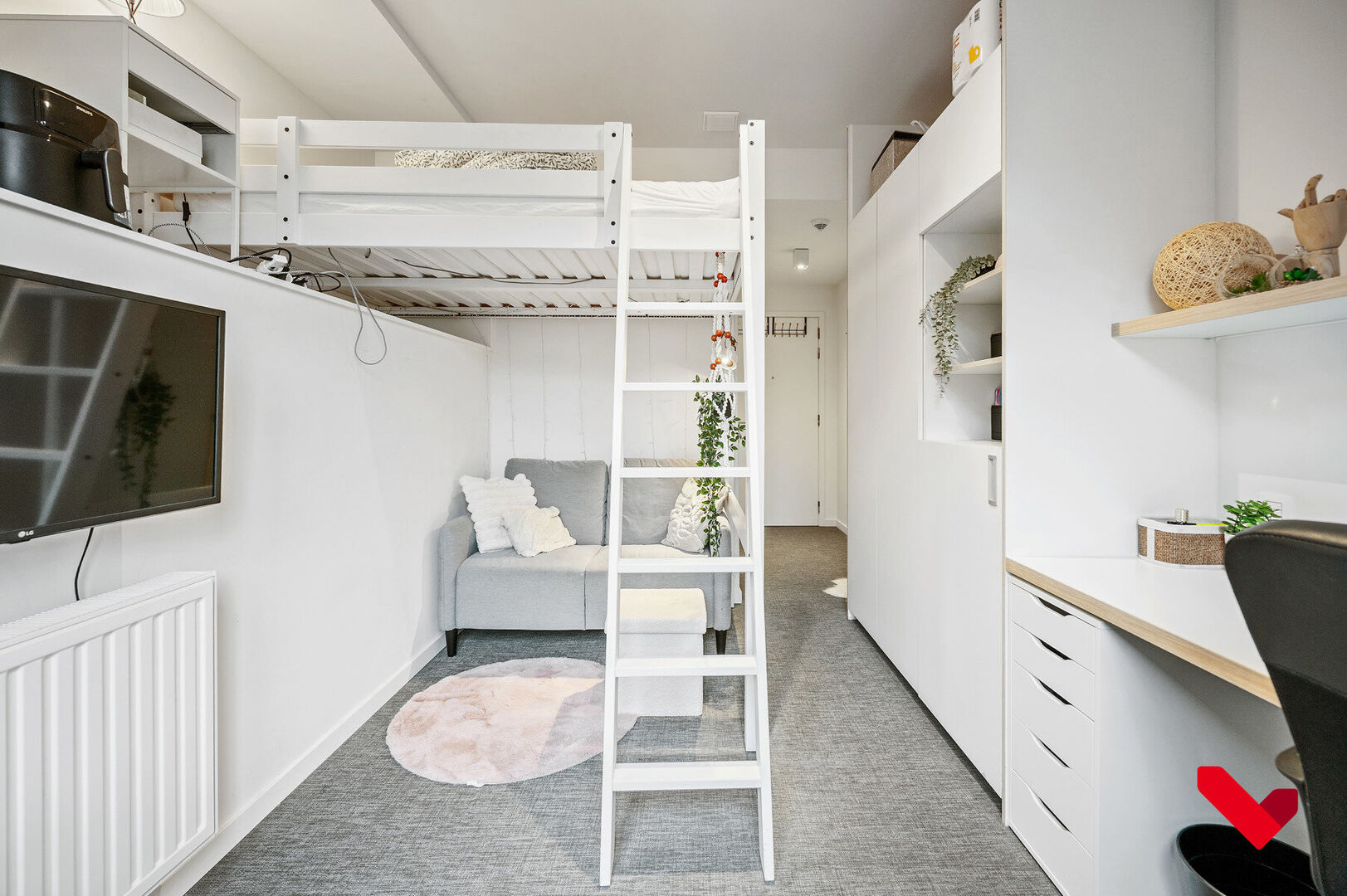 Chambre étudiante avec mezzanine et salle de bain privée
