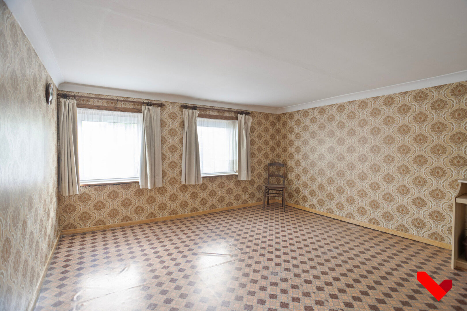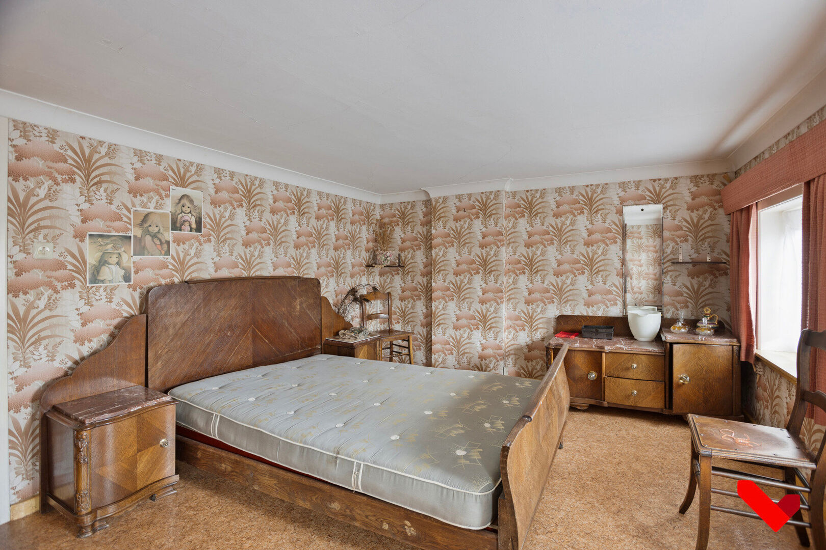 À l’étage, il y a trois chambres. Les plafonds à cet étage sont légèrement plus bas que la norme, mais la présence du grenier offre la possibilité de les rehausser, créant ainsi un espace supplémentaire et plus de confort. La maison présente donc un grand potentiel d’agrandissement ou de rénovation selon vos goûts.