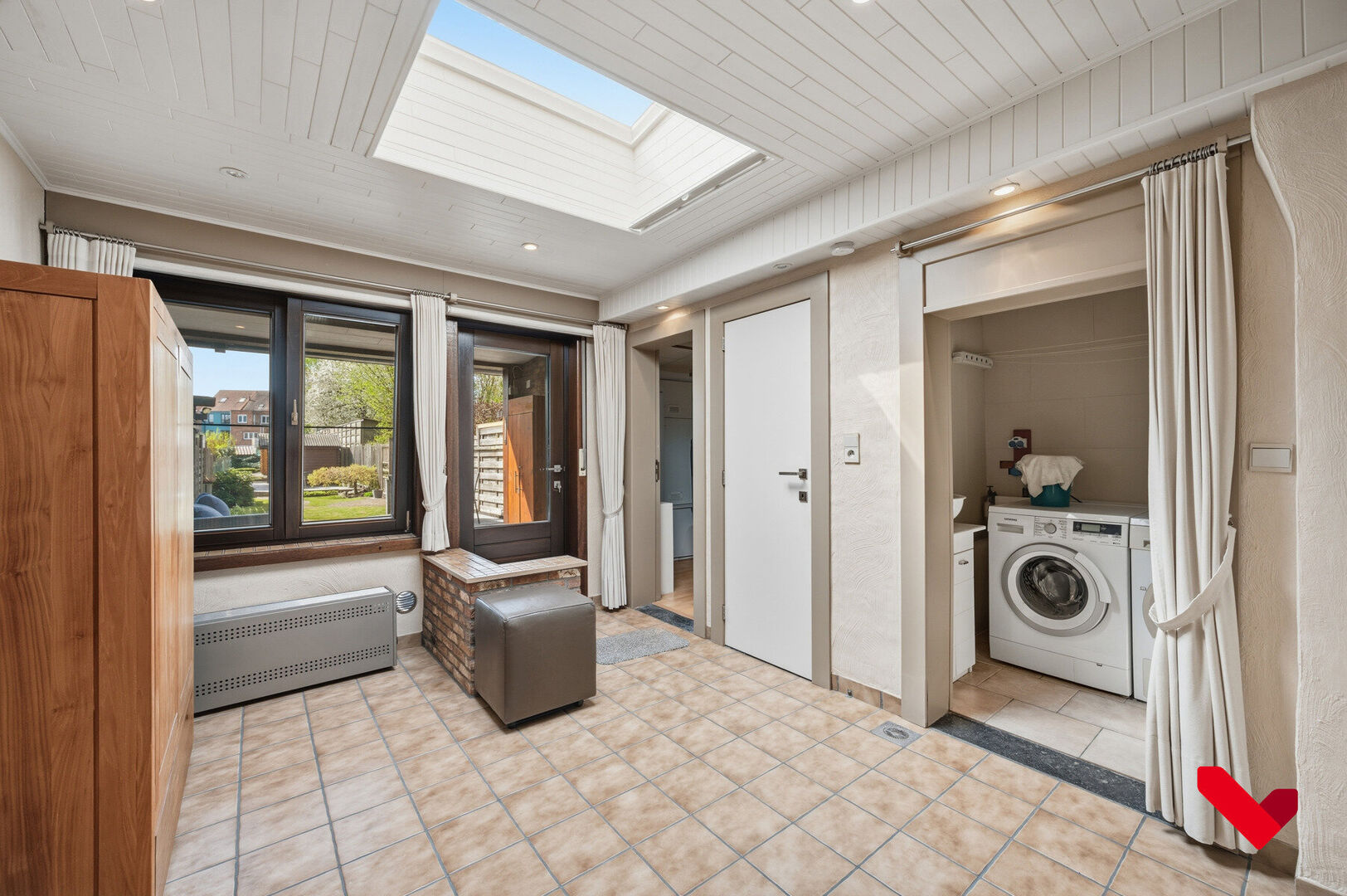 À l’extérieur, vous profitez d’un agréable jardin avec des terrasses orientées plein sud, vous permettant de bénéficier du soleil tout au long de la journée. Un garage attenant est également inclus. Atout supplémentaire : possibilité d’acquérir un garage supplémentaire moyennant un supplément – idéal pour du stockage ou un deuxième véhicule.