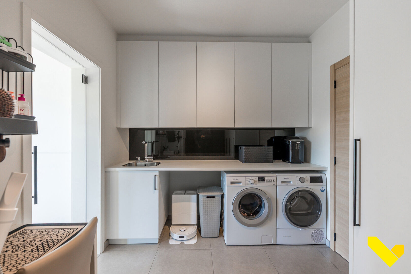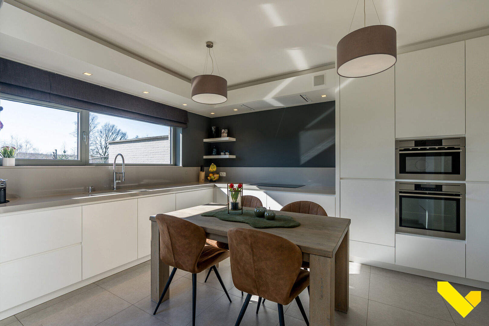 Depuis le hall d’entrée, vous accédez directement à un espace de vie convivial et spacieux avec cuisine ouverte, offrant une atmosphère agréable et aérée. Le poêle à pellets assure un chauffage chaleureux et économe en énergie — parfait pour les mois d’hiver. Une buanderie pratique se trouve attenante. En poursuivant, vous arrivez dans le garage spacieux, offrant un confort supplémentaire et un grand espace de rangement.