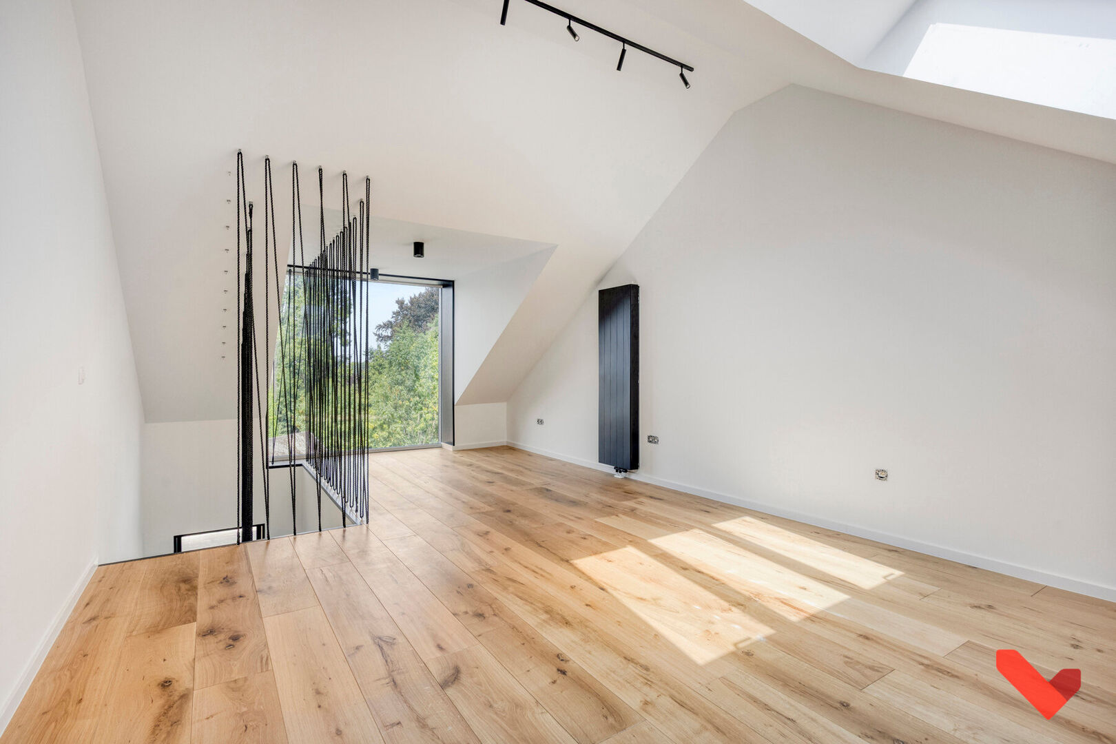 Au premier étage, vous trouverez deux chambres et une salle de bains moderne avec douche à l’italienne, réalisée avec des matériaux contemporains et une finition élégante. Le grenier a été aménagé en troisième chambre avec une grande lucarne, apportant beaucoup de lumière et créant une atmosphère agréable. La maison dispose également d’une cave, idéale pour un espace de stockage supplémentaire.