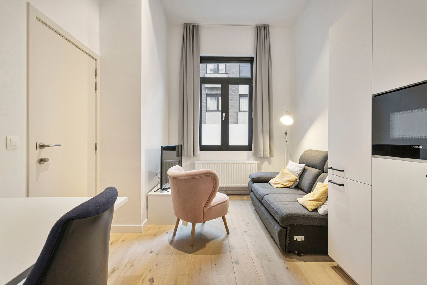 Het pand werd met oog voor detail en duurzaamheid aangepakt: alles is picobello in orde en voldoet aan de huidige normen. Elke kamer beschikt over een eigen douche, toilet en lavabo, wat zorgt voor een groot comfort bij de huurders. Daarnaast zijn er 2 goed uitgeruste, gemeenschappelijke keukens die bijdragen aan een aangename leefomgeving voor de studenten.