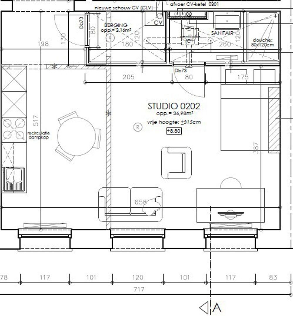 De stijlvolle leefruimte is voorzien van een moderne ingebouwde keuken met o.a. vaatwas en combi-oven. De warm aandoende badkamer is uitgerust met hangtoilet, wastafel met spiegel, inloopdouche en handdoekdroger. Bijkomend beschik je over een ruime berging in de studio voor optimaal wooncomfort.