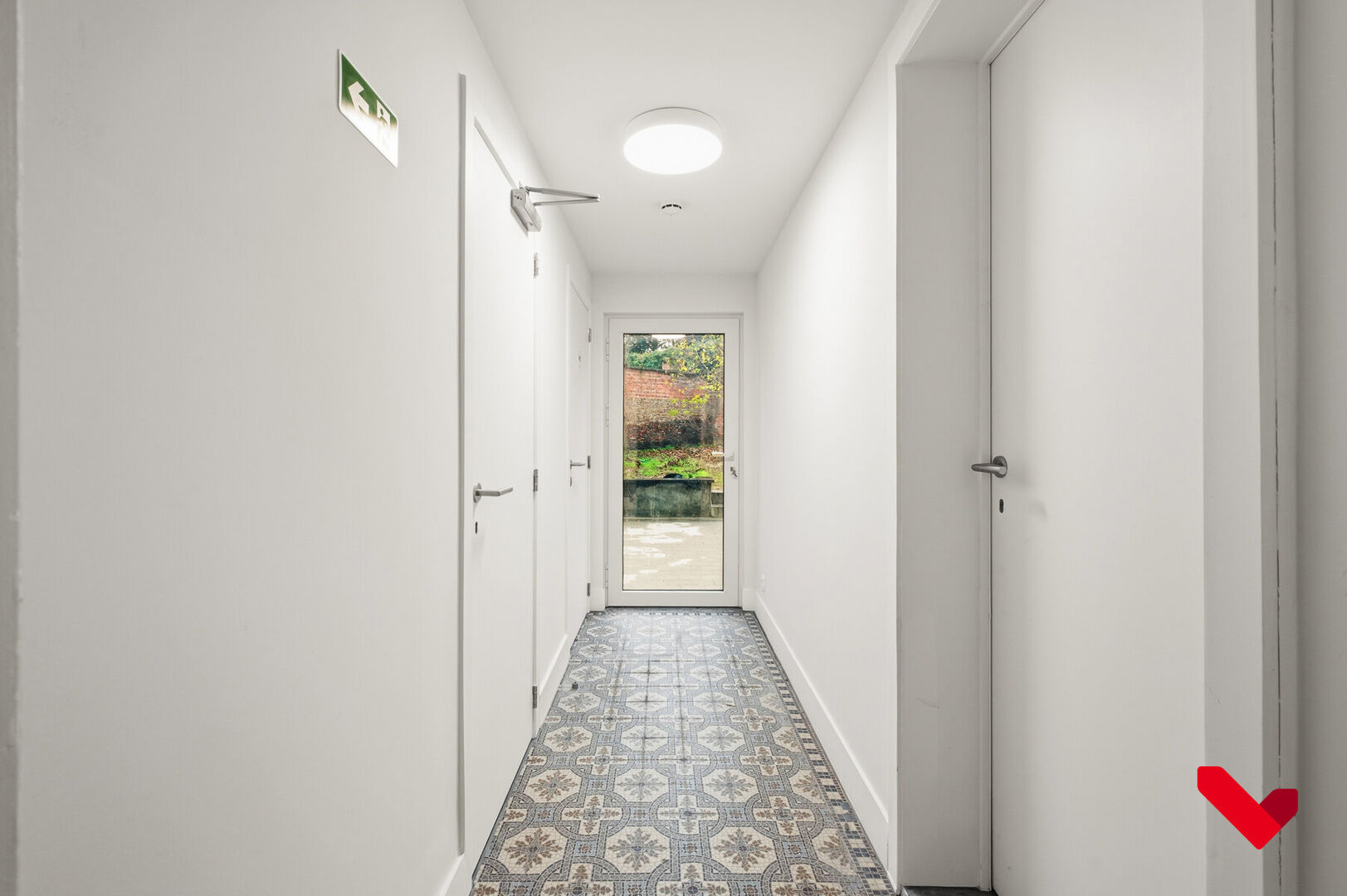 Deze praktisch ingerichte studio situeert zich aan de achterkant van het gebouw en biedt een rustgevend uitzicht op de tuin.
