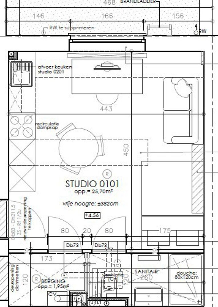 De stijlvolle leefruimte is voorzien van een moderne ingebouwde keuken met o.a. vaatwas en combi-oven. De warm aandoende badkamer is uitgerust met hangtoilet, wastafel met spiegel, inloopdouche en handdoekdroger. Bijkomend beschik je over een ruime berging in de studio voor optimaal wooncomfort.